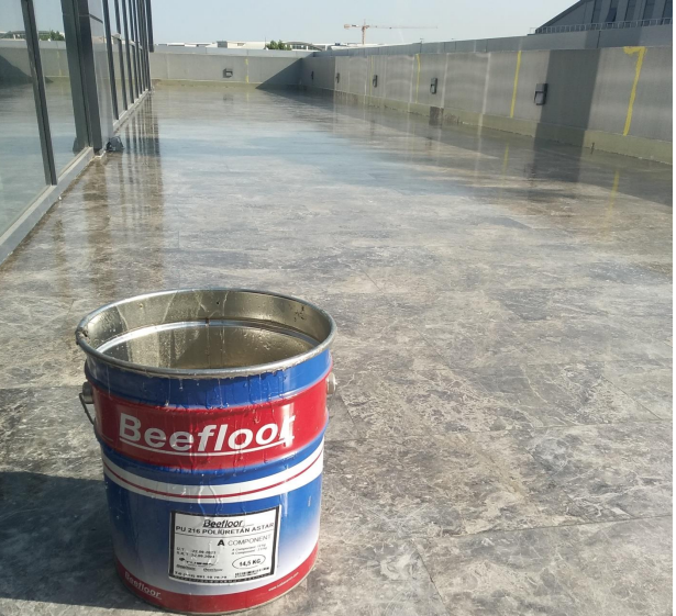 bileşenli ürün tek bir kovada karıştırılıp zemine mala